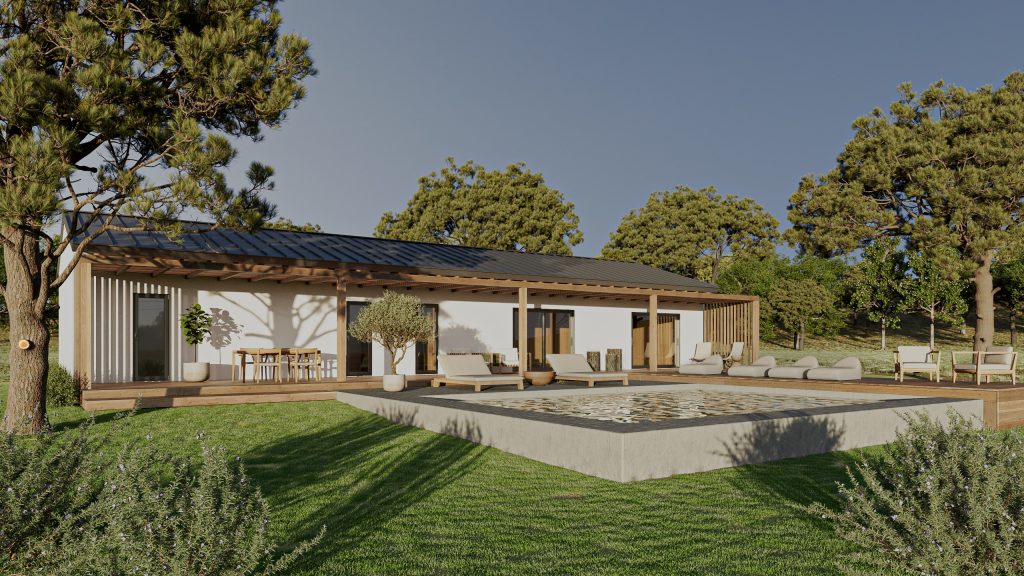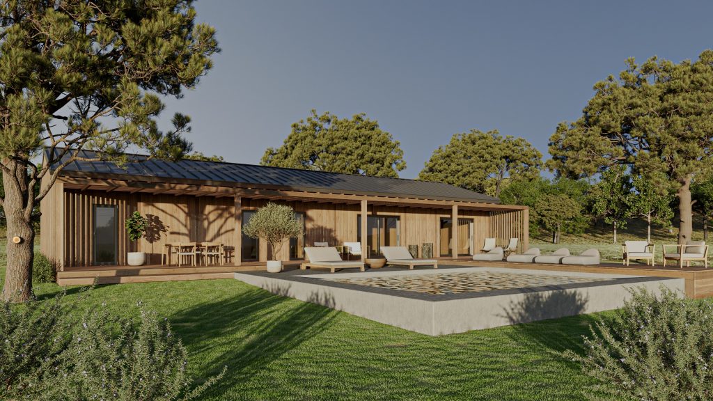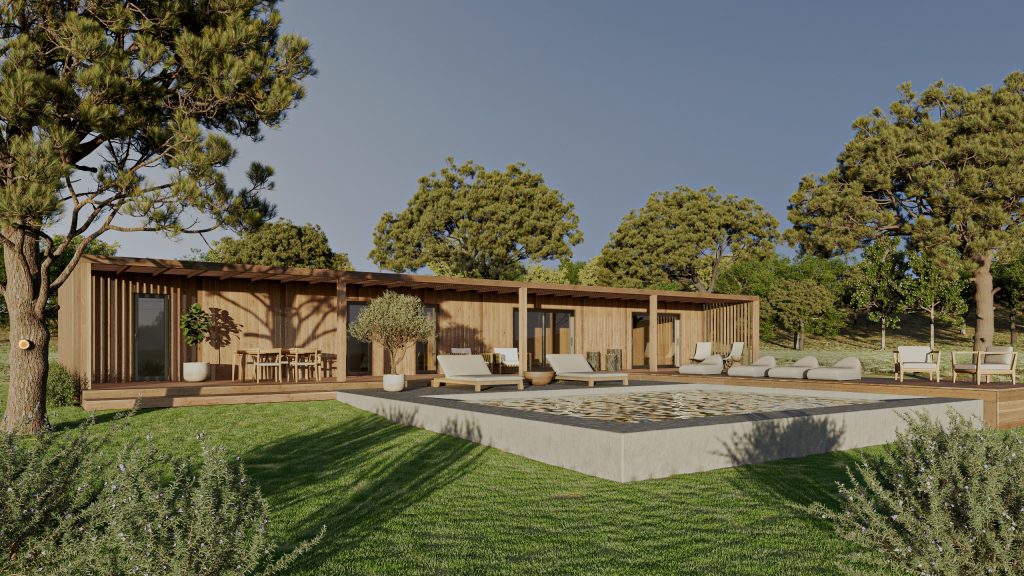 A casa assenta numa estrutura sólida, pensada não apenas para oferecer o máximo de conforto, mas também para ser altamente resistente e durável. Construída com fundações em “ground screws” (ou fundações em betão se for o desejado), tem a estrutura e revestimentos em madeira lamelada colada tratada e madeira maciça de pinho silvestre tratada em autoclave, num sistema de construção wood frame.