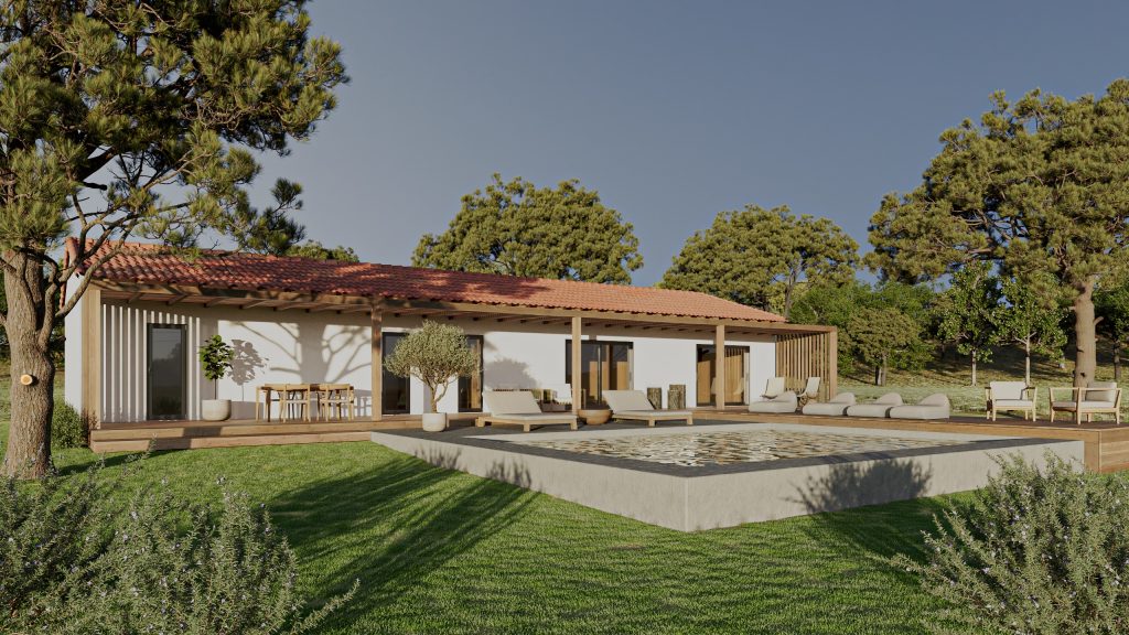 Tem ainda a particularidade de ter duas pérgulas, que estendem a vida para o exterior. Mais do que espaços ao ar livre, são convites para abrandar, e sentir o espaço envolvente.
