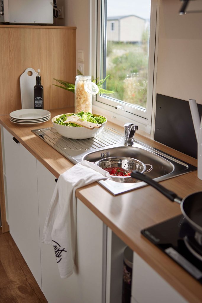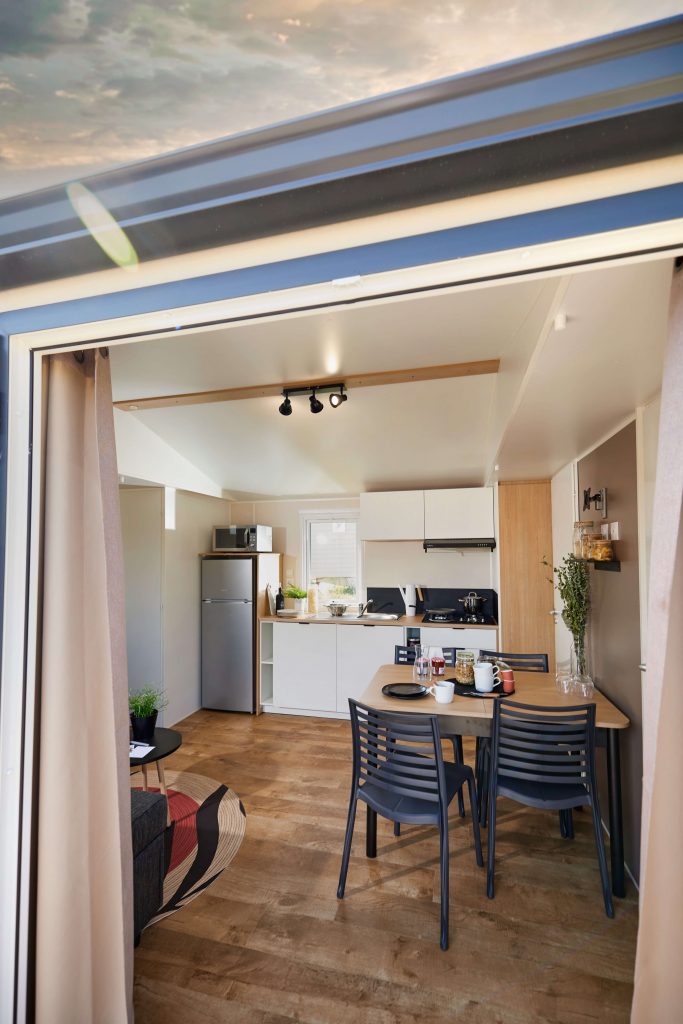 Com um layout funcional e otimizado, tem uma área de cozinha e jantar muito prática, uma sala de estar agradável e muito espaço de arrumação. A área de dormir dos pais/crianças é separada, para uma maior privacidade.