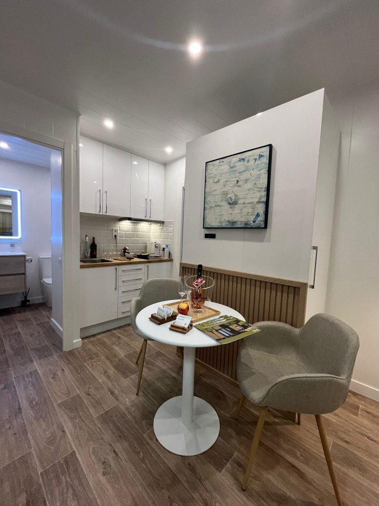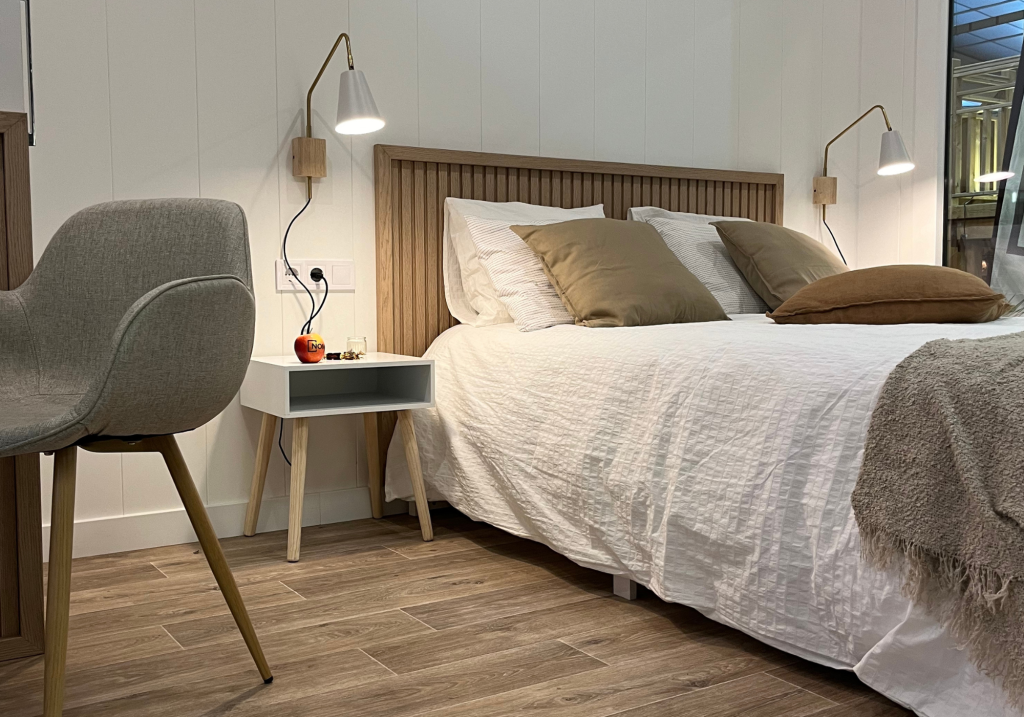 Um modelo luxuoso, com muito espaço e com todos os confortos. A cama desta suíte fica junto a uma enorme janela que deixa entrar imensa luz, perfeita para despertar devagar e contemplar a paisagem. Na área de estar existe ainda uma ótima área de descanso. A cozinha está disponível na versão PLUS.
